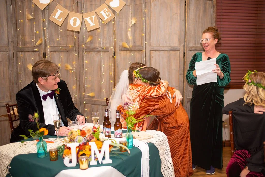After signing their marriage certificate in the Gardens at Violas and greeting guests plenty of time was spent perfecting the couple’s group shots, and they absolutely came out reflecting the love that this couple has for their family. The photo session was full of love, laughter, and an array of gorgeous fall colors that served as a backdrop for their unforgettable day.